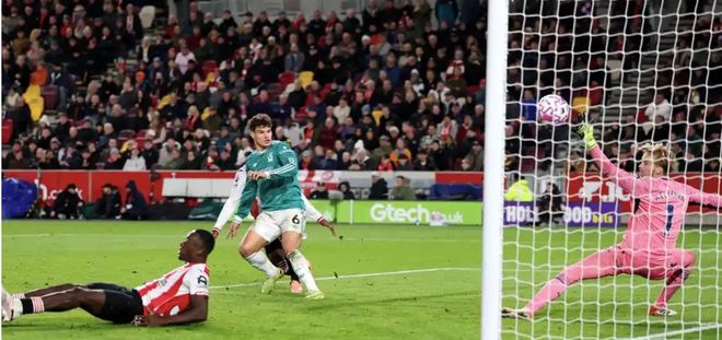 虽然在补时阶段,科尔克兹接到了队友的传球,完成一次抢点的包抄破门、把比分扳回一城。不过下半场开始之后,范迪克在禁区中的推搡加踢人、就造成点球的问题。就此布伦特福德已经3:1领先了。